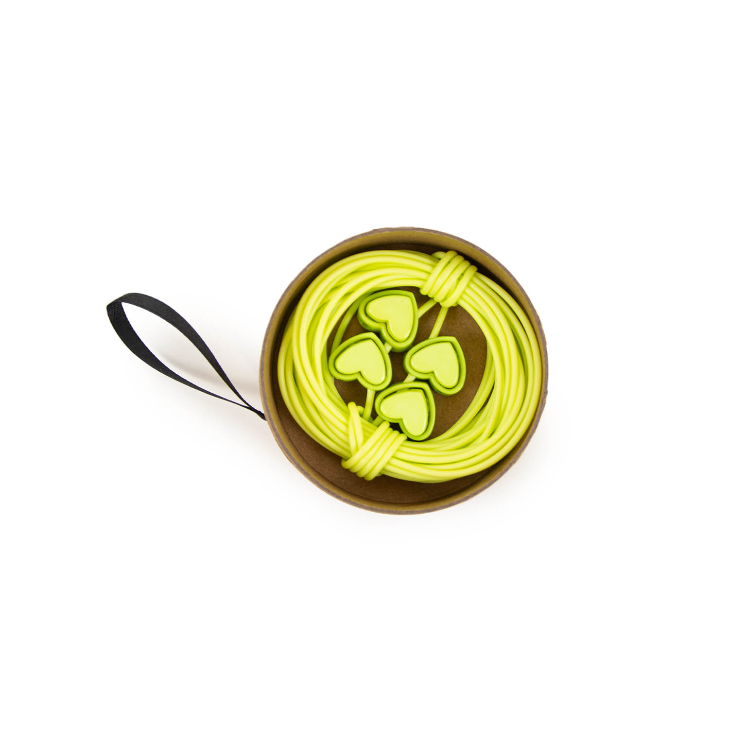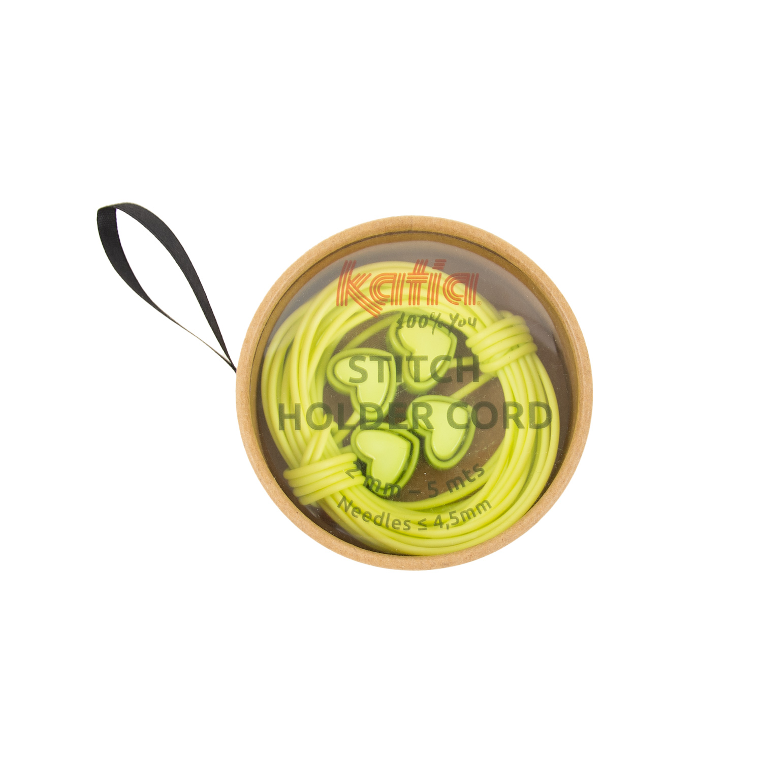 Mantén tu labor siempre a salvo con este cable guardapuntos flexible de 2 mm en color verde. Sus 5 metros de largo te permiten cortarlo a la medida que necesites: para dejar puntos en espera o alargar el cable de agujas circulares y probar la prenda mientras avanzas. Incluye cuatro prácticos bloqueadores en forma de corazón para fijar los extremos con seguridad y evitar que se escapen los puntos. Compatible con labores tejidas con agujas de hasta 4,5 mm. Convierte cada proyecto en una experiencia más cómoda y fluida, y disfruta al máximo de tu pasión por el tejido.