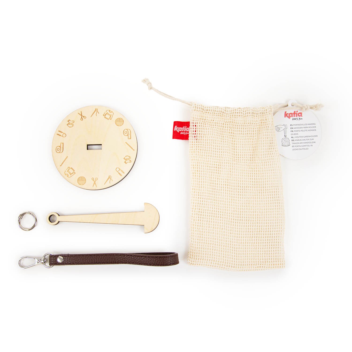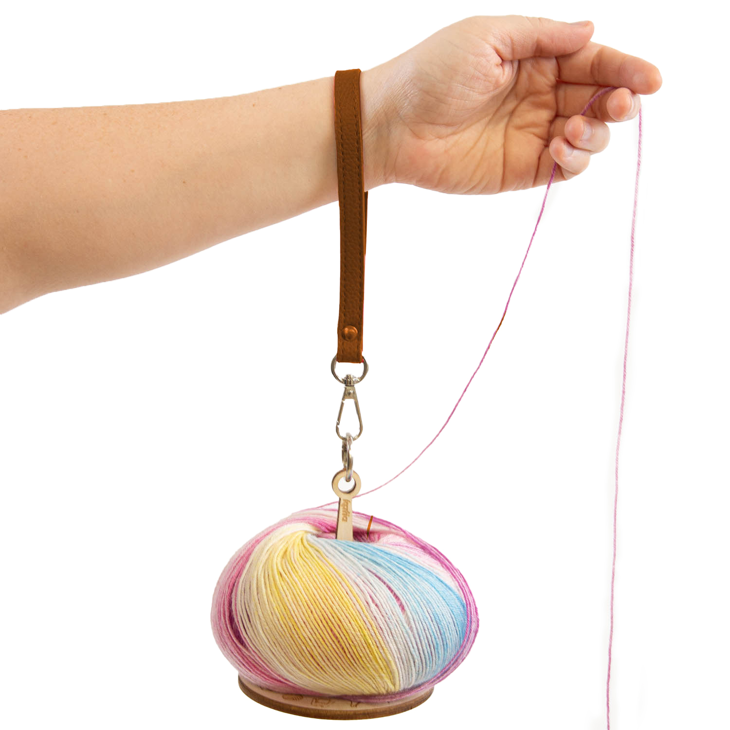 Portaovillo de madera, se coloca cómodamente en la muñeca para tejer o crochetear donde quieras, incluso al caminar. Su estructura desmontable facilita guardarlo en tu bolsa de labores.